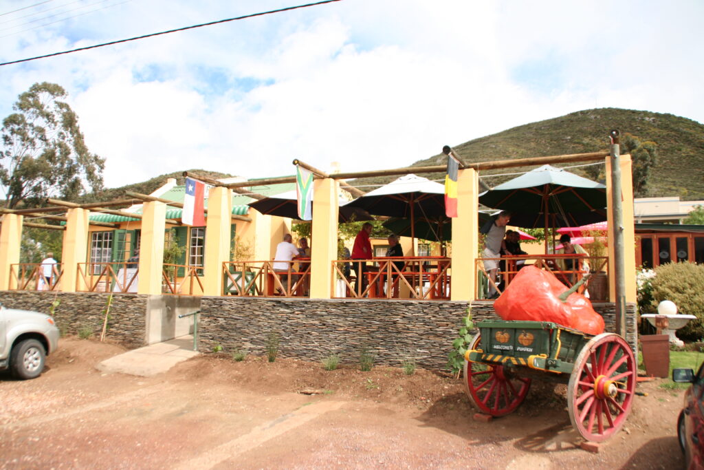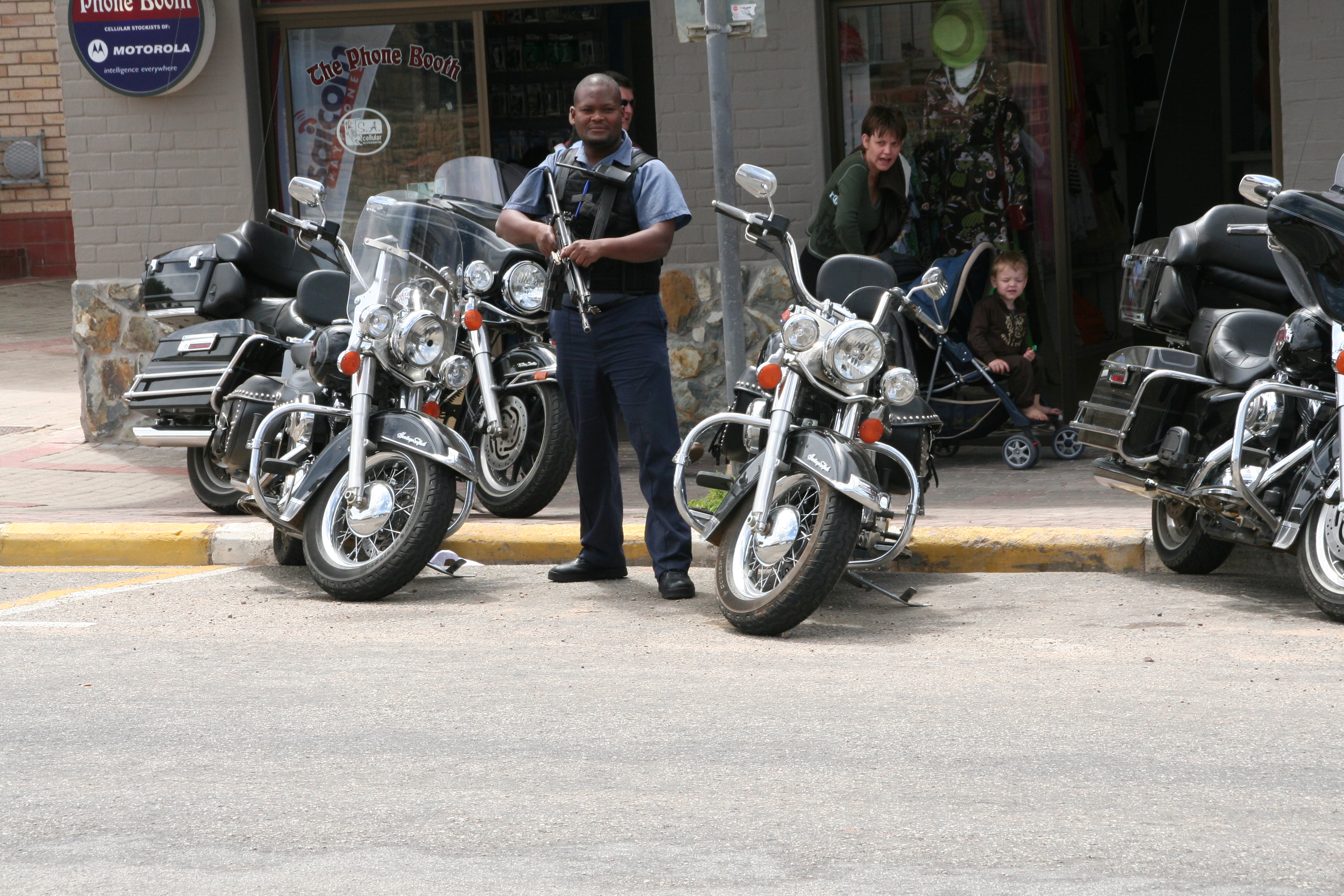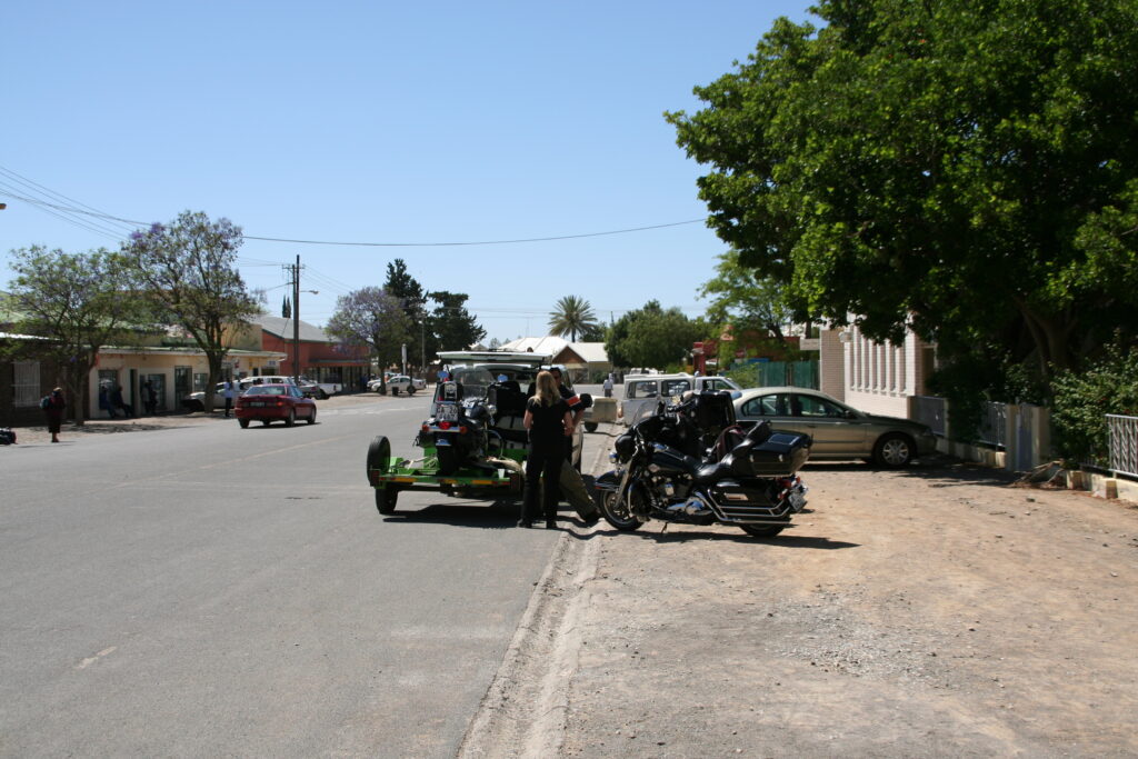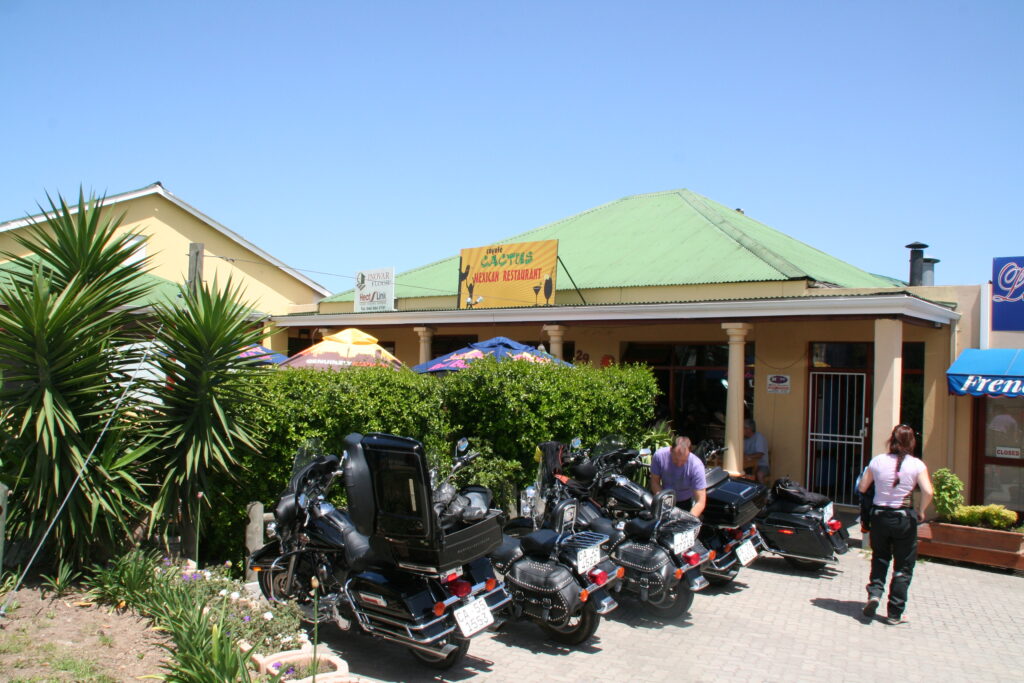 • 5 november 2007: Elke morgen waren de motoren weer keurig gepoetst door lokale bewoners en konden we na het ontbijt op schone motoren vertrekken om via Route 62 naar Oudshoorn te gaan. Bij restaurant Pumpkin zijn we gaan lunchen, om daar na verder te rijden naar Outshoorn. In Outshoorn zijn we bij de struisvogelfarm geweest waar je op mocht zitten o te racen als je max. 80 kg. was, dus helaas niet voor mij. Je mocht wel op een ei gaan staan die sterk genoeg zijn daarvoor, ’s avonds hebben we als diner van een BBQ genoten bij de lodges.
